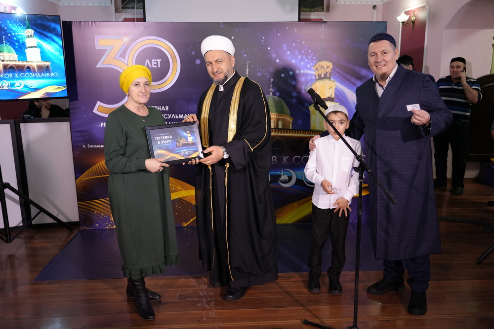 Кульминацией вечера стало событие, которое впервые состоялось в Ивантеевском районе: розыгрыш путевки в Умру! Билет в священные места получила жительница Пугачева, давняя прихожанка Соборной мечети.