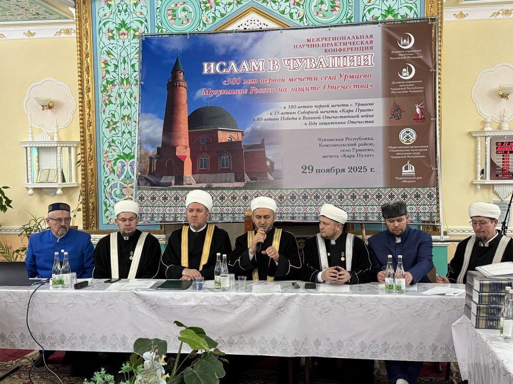 Мусульмане Саратовской области приняли участие в Межрегиональной научно-практической конференции «Ислам в Чувашии: 380 лет первой мечети села Урмаево. Мусульмане России на защите Отечества», которая состоялась 29 ноября 2025 года в республике.
