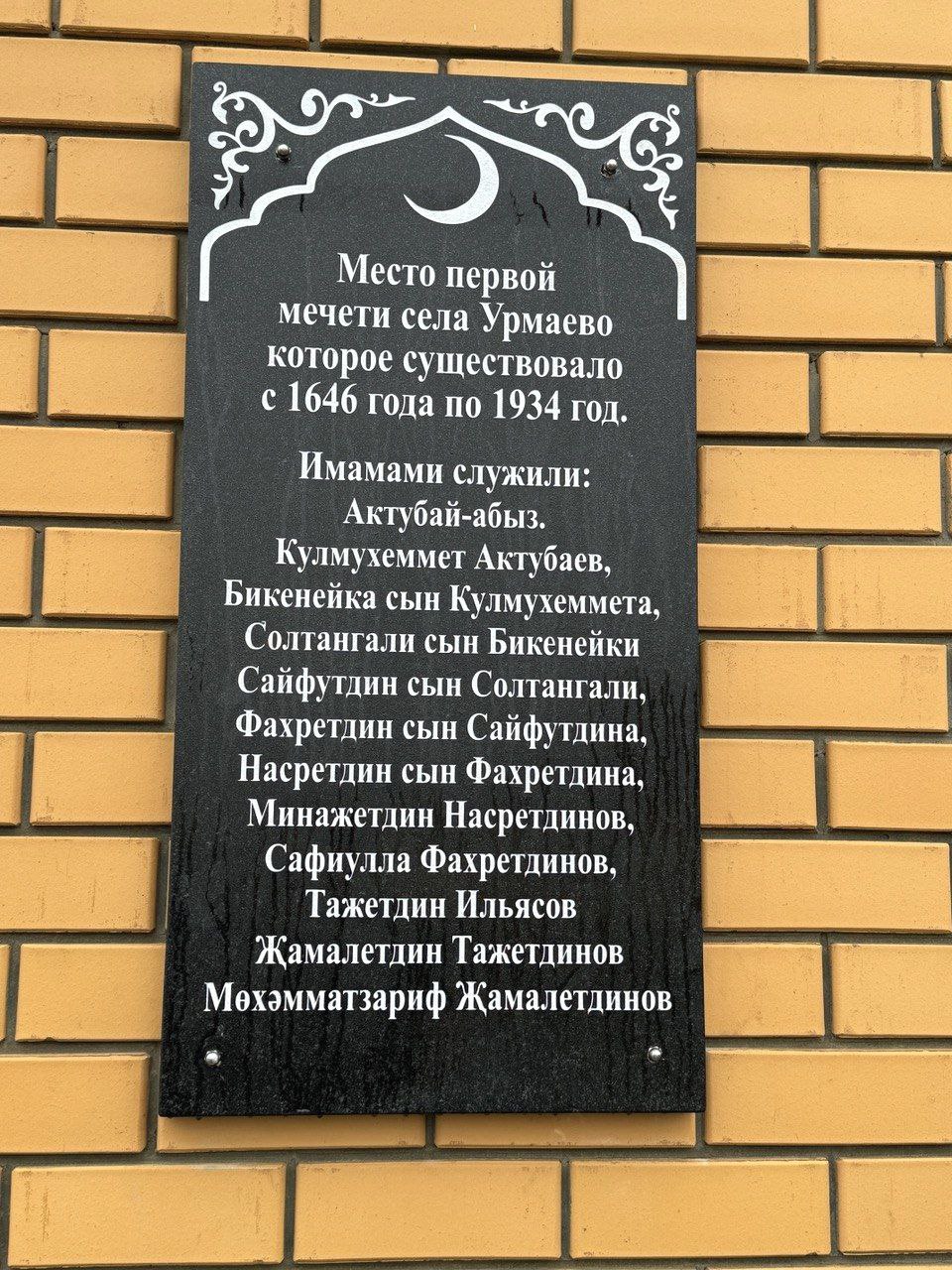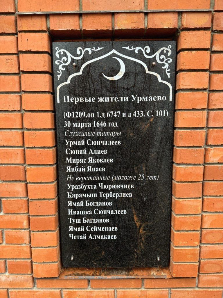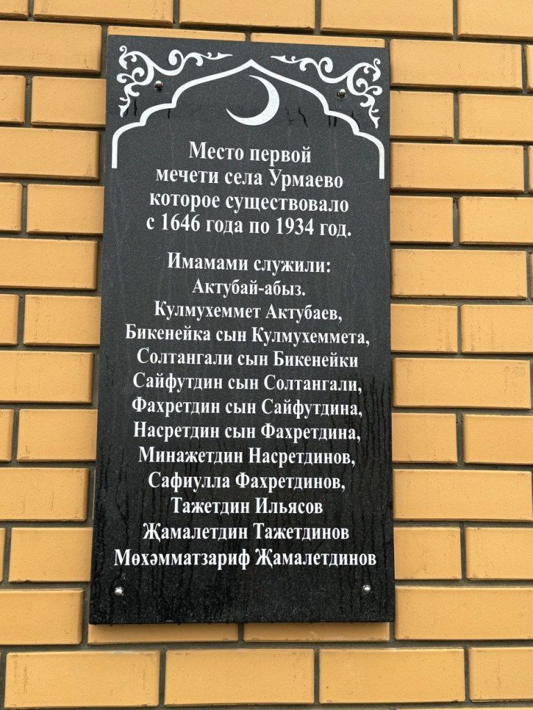 В рамках поездки в татарское село саратовская делегация также посетила торжественное открытие двух мемориалов: памятной доски на месте первой мечети, действовавшей с 1646 по 1934 годы, и стеллы с именами первых поселенцев Урмаева и всей плеяды имамов до сегодняшнего дня.