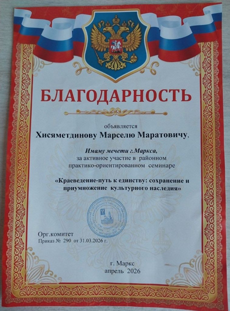 » Имам г. Маркса принял участие в семинаре по краеведению