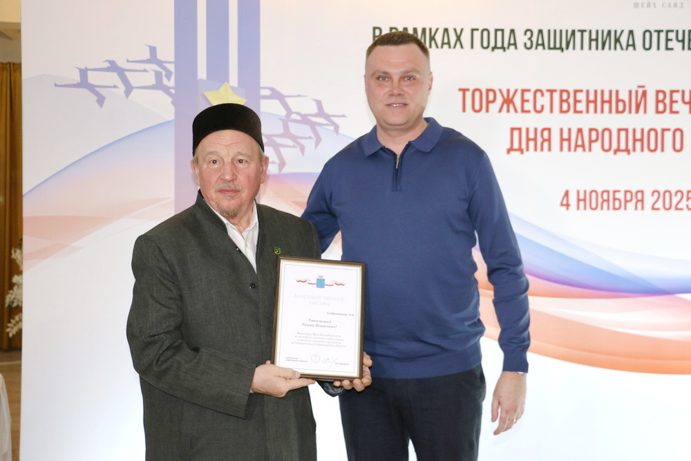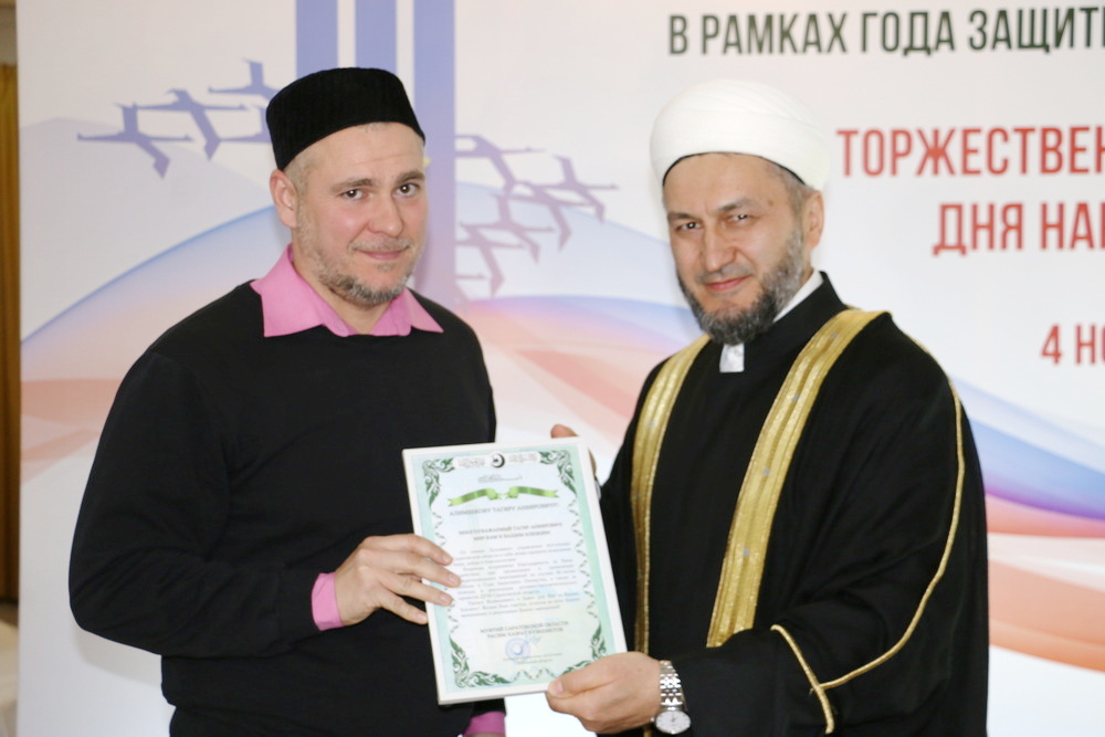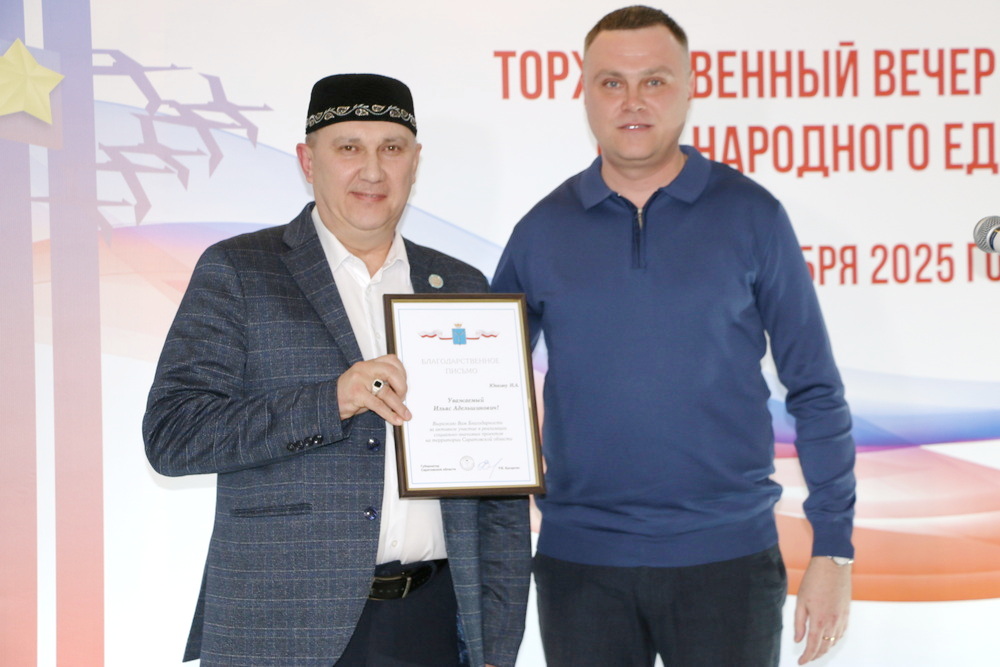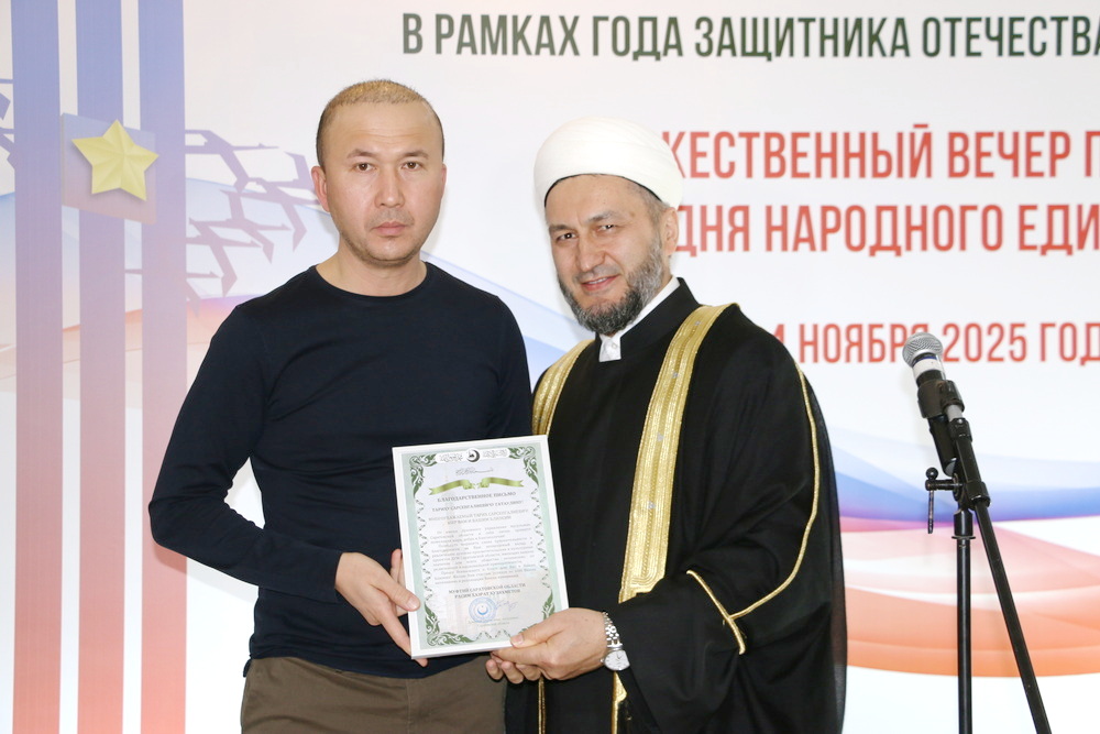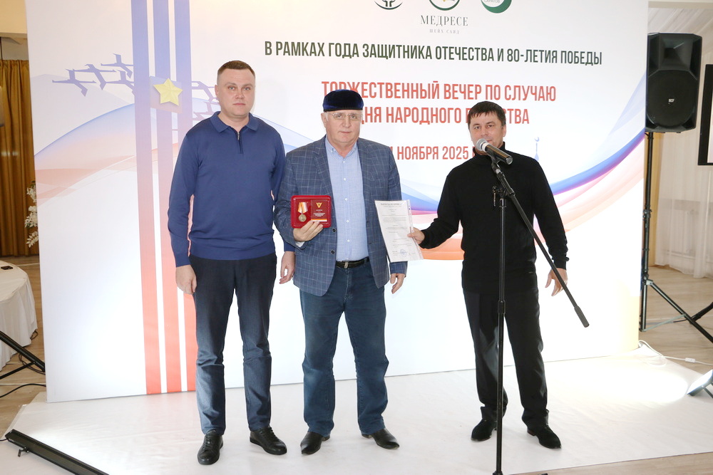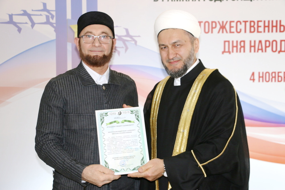 Имамы и активисты Саратовской области удостоены ряда наград от Министерства обороны РФ. Церемония вручения состоялась 4 ноября 2025 года в ходе торжественного вечера по случаю Дня народного единства, который проходил в Энгельсе.