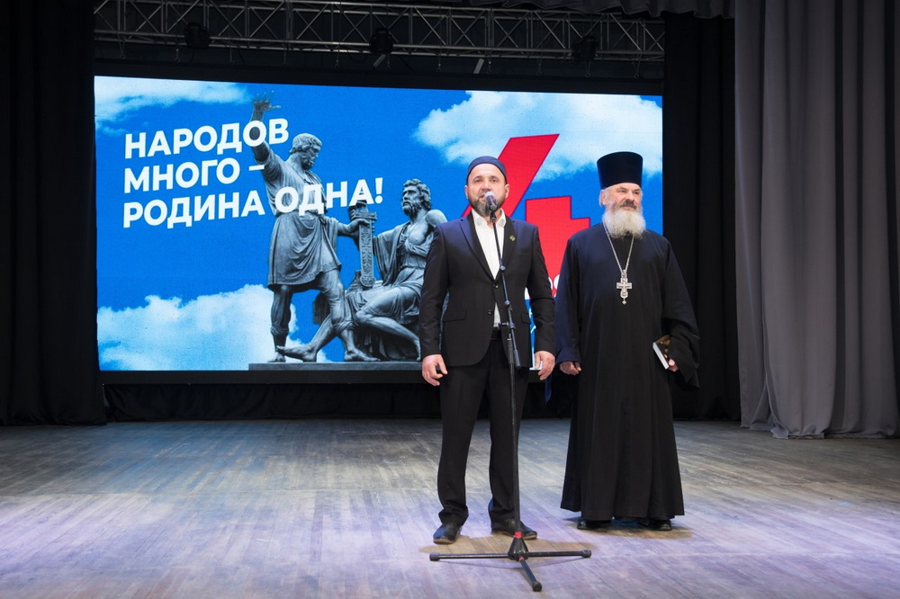 Заместитель муфтия, имам Вольского района Абдулхаким-хазрат Яфаров выступил на концерте «В единстве народа – сила России!» в честь Дня народного единства в ДК «Восход» Вольска. Он напомнил о недопустимости для мусульман такого греха, как возвышение представителей одного народа над другими и привел известный аят из Корана, в котором говорится, что Всевышний Аллах создал людей племенами и народами, чтобы те познавали друг друга.