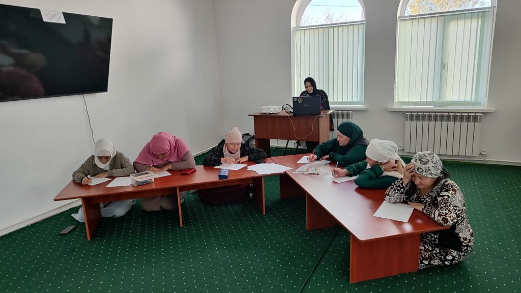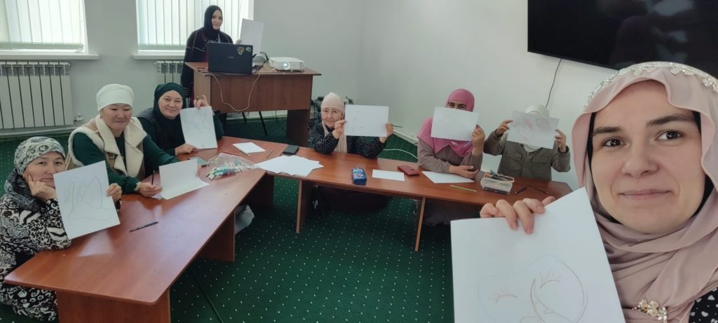 Не обошлось и без разминки для ума, который также нуждается в постоянных тренировках. Ведущая подготовила для сестер по вере интересные нейроупражнения, направленные на творческое развитие. Вооружившись листками и ручками, мусульманки рисовали, сочиняли, проявляли креативность…