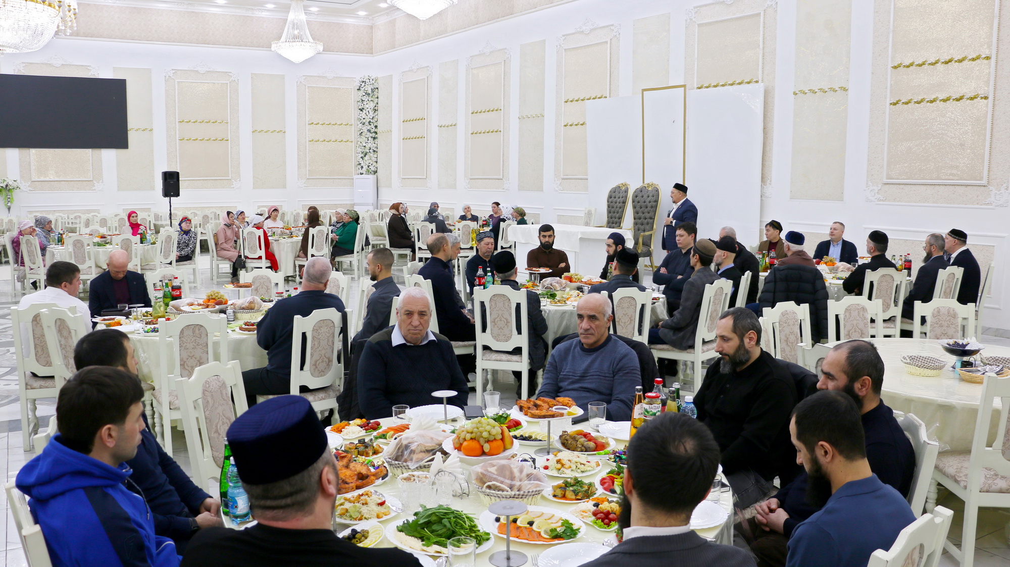 На ужин-разговение, которое состоялось 25 февраля 2026 года, были приглашены порядка 60 участников СВО и членов их семей из Саратова, Энгельса и районов Саратовской области. Также вместе с ними собрались волонтеры и участники гуманитарных миссий, сообщает islampov.ru.