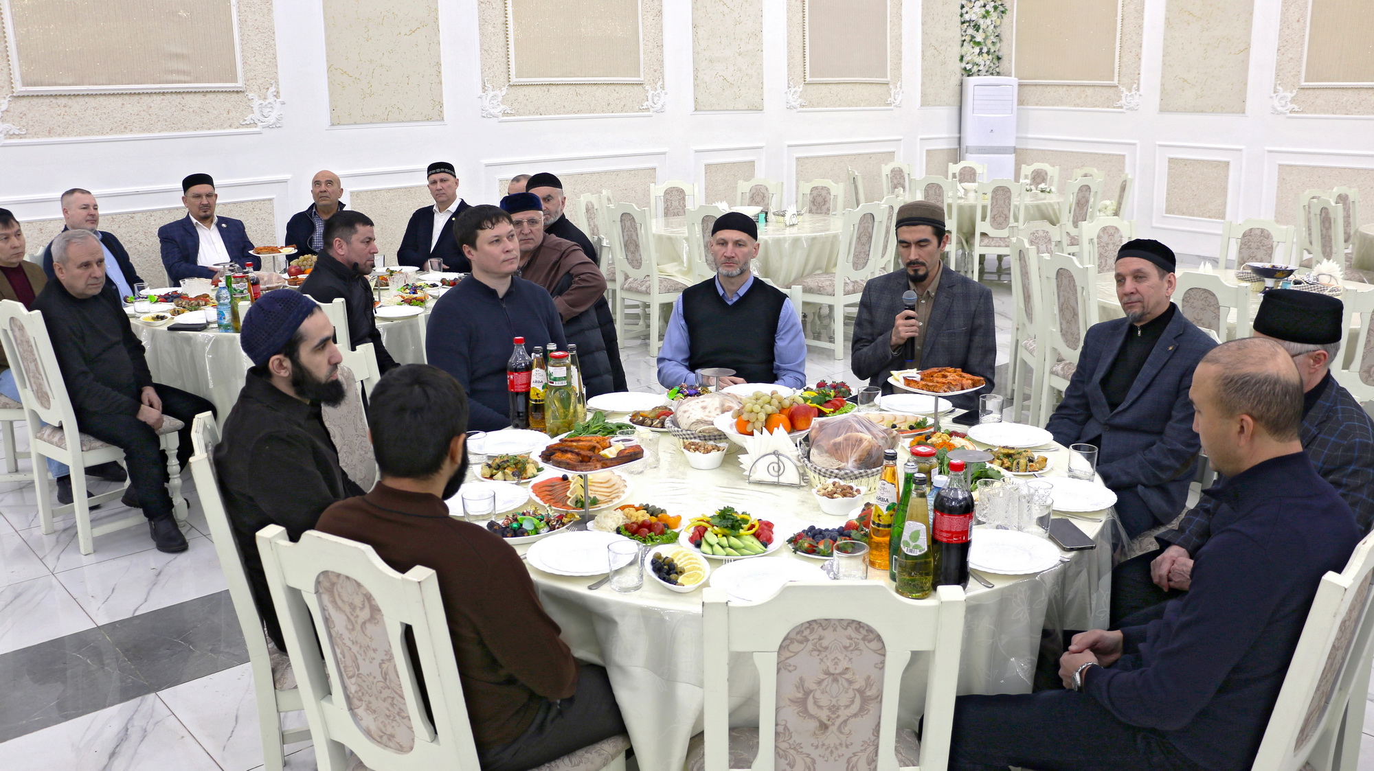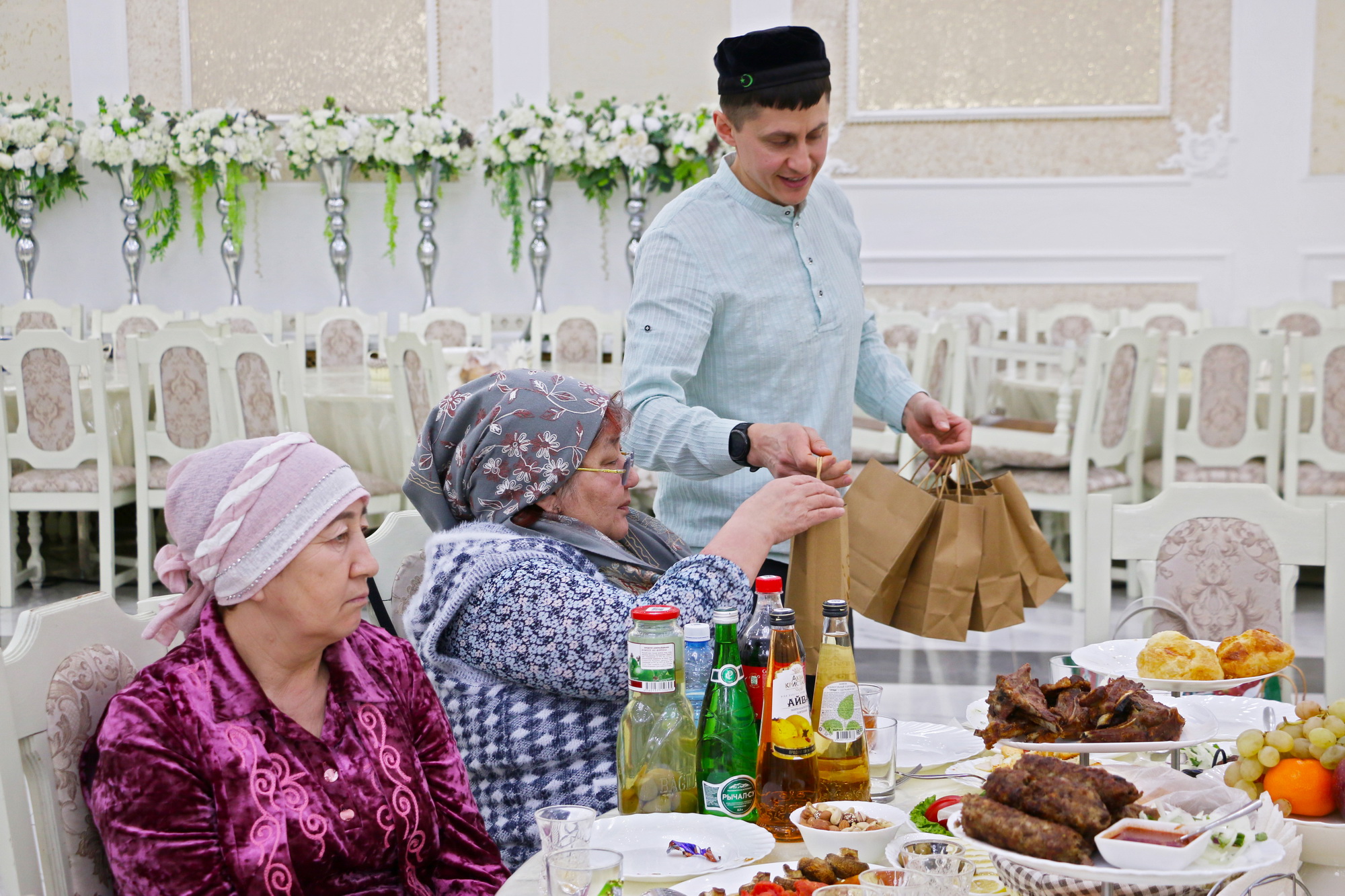 «Мы решили провести ифтар, чтобы поддержать их, напомнить о Благословенном месяце, месяце уразы и благих дел. Также мы пригласили тех, кто на протяжении нескольких лет занимается волонтерской деятельностью, собирал гуманитарные грузы и выезжал с ними в зону СВО, поддерживает бойцов на передовой», — сказал заместитель главы ДУМ Поволжья, имам-хатыб Саратовской Соборной мечети Рустам-хазрат Мухитов.