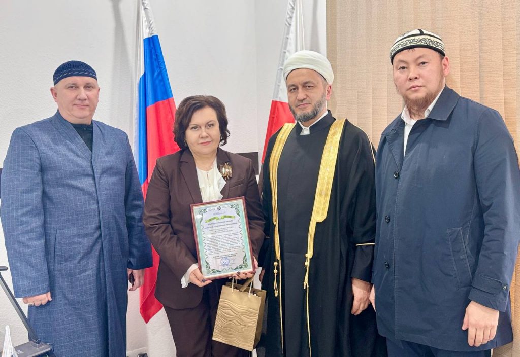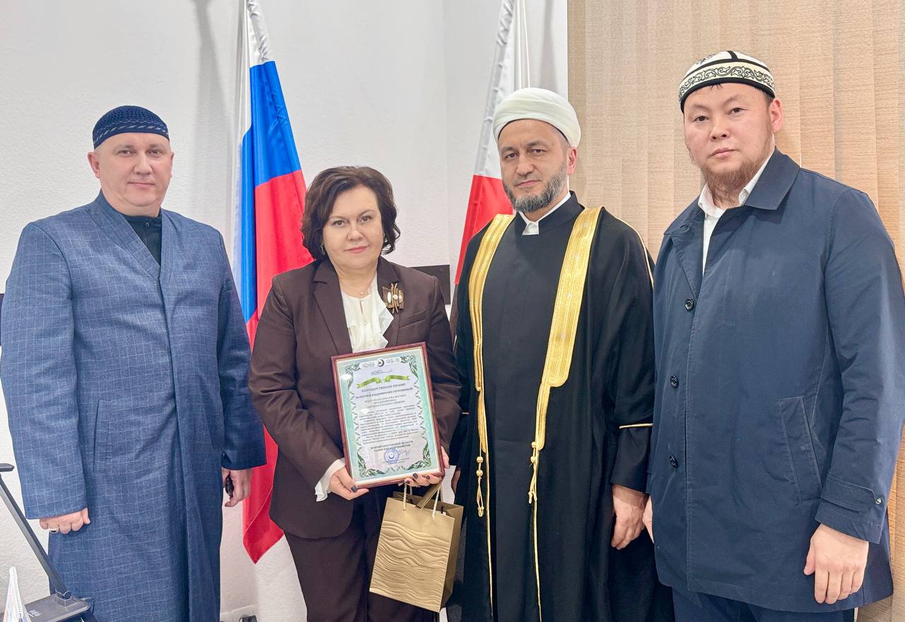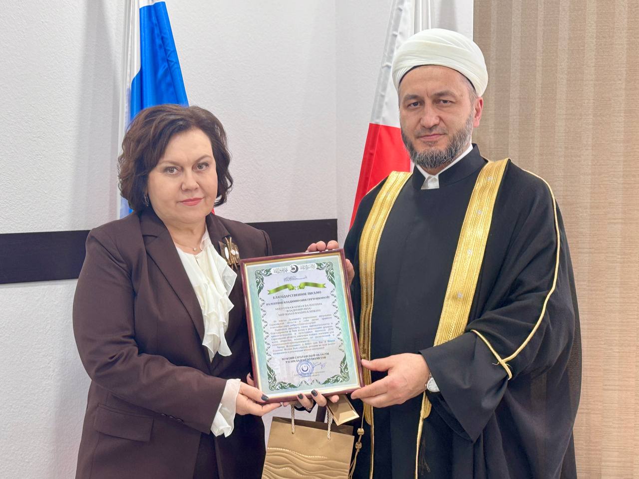 Расим-хазрат Кузяхметов в свою очередь вручил Валентине Владимировне благодарственное письмо за поддержку инициатив и деятельности Духовного управления мусульман Саратовской области.