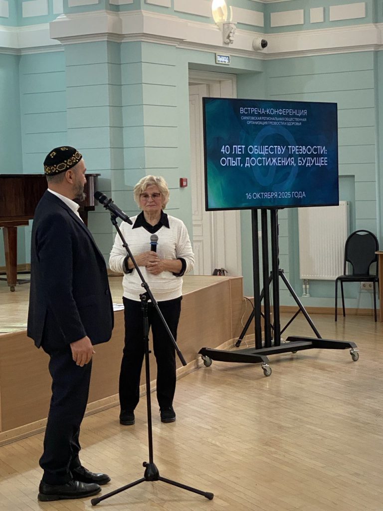 На минувшей неделе Саратовское общество трезвости и здоровья отметило свой 40-летний юбилей. На торжественное мероприятие в честь этого события, которое состоялось 16 октября 2025 года, собрались друзья и единомышленники организации. В их числе также были представители мусульманского сообщества: муфтий ДУМ региона Расим-хазрат Кузяхметов, руководитель СРОО «Возрождение» Рустам Абдульманов и другие.