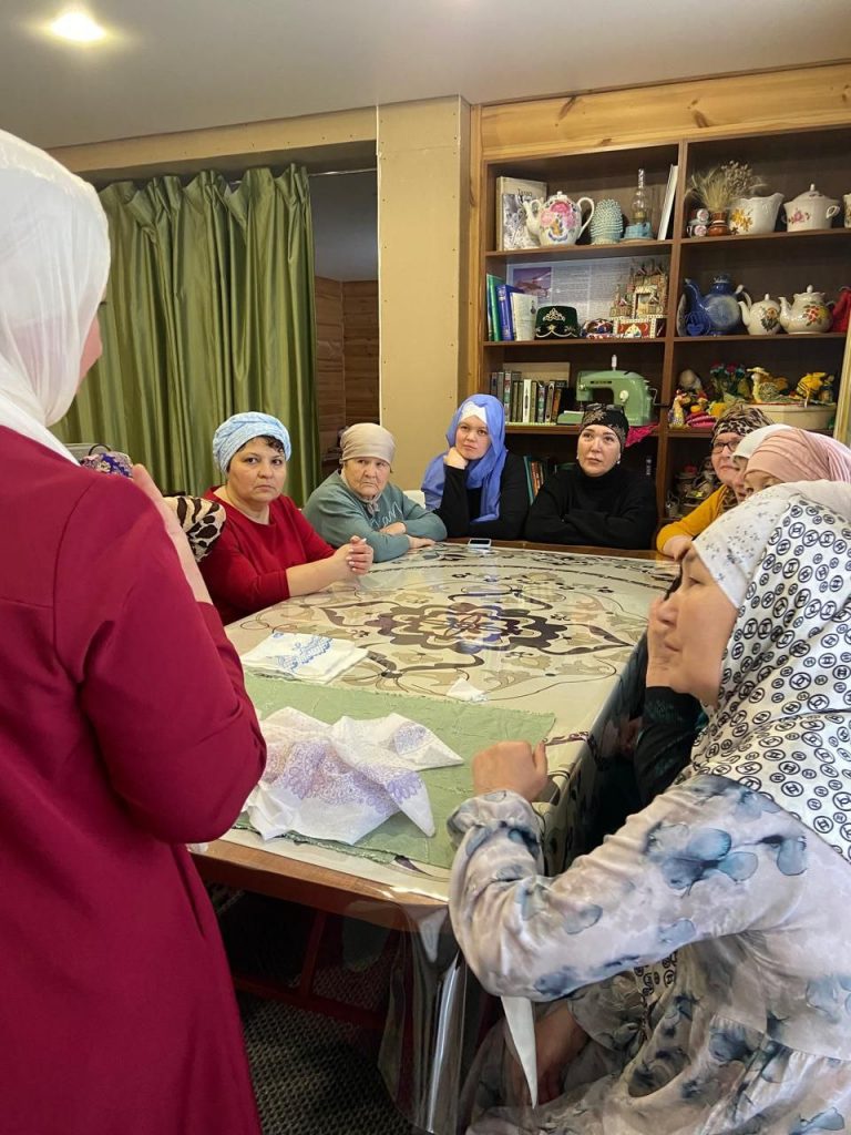 Помимо лекций, в январе также состоялся мастер-класс по повязыванию платка. Ведущая Эльвира-ханум Хисяметдинова напомнила женщинам, что хиджаб в жизни мусульманки — это не просто элемент одежды, а символ веры, скромности, достоинства и следования божественному повелению, после чего участницы вспомнили старинные способы ношения платка и увидели современную технику повязывания.