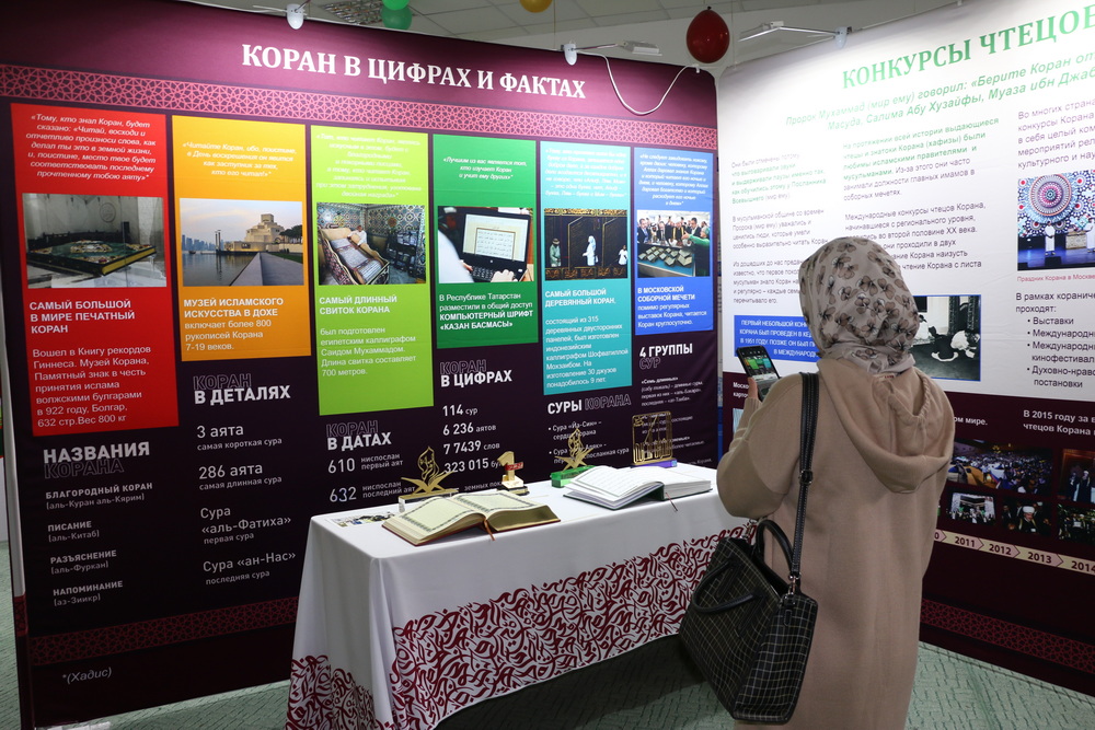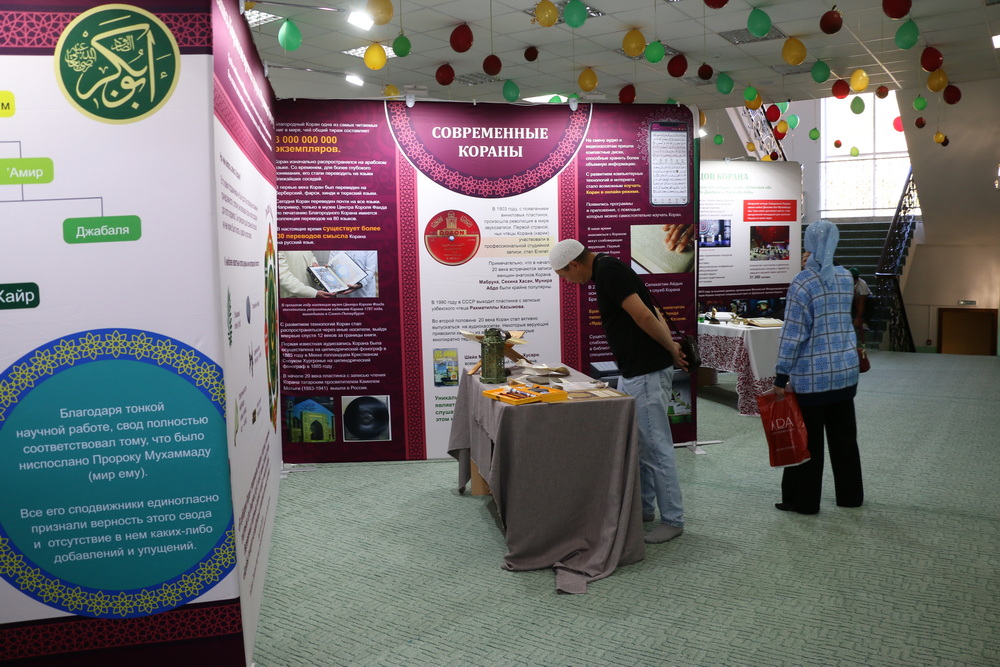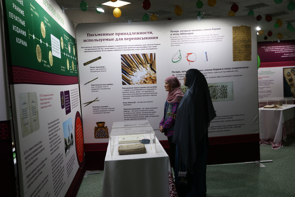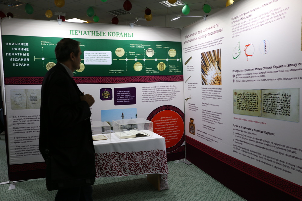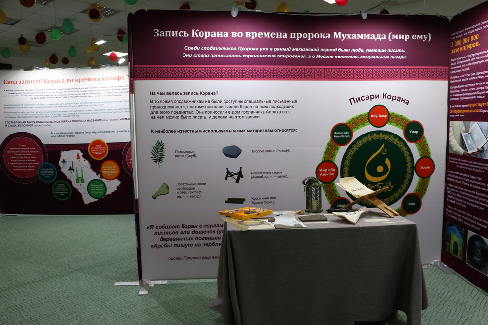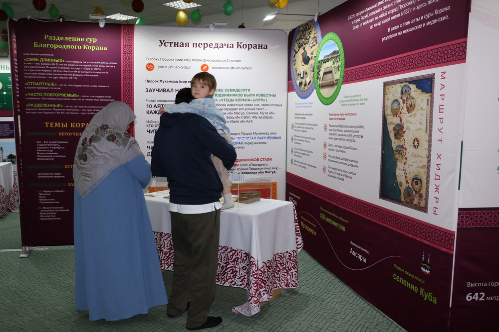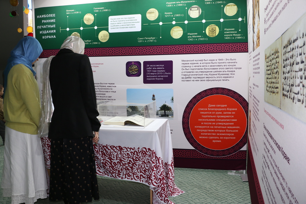 Стоит отметить, на первом этаже Саратовской Соборной мечети были представлены экспозиции, посвященные истории Ислама и мусульман, развитии коранических наук, конкурсов чтецов Книги Аллаха в мире и России. Также посетители выставки могли детально изучить историю фиксации Корана, увидеть старинные рукописи, первые печатные экземпляры, редкие экспонаты, которые смогли сохраниться до наших дней.