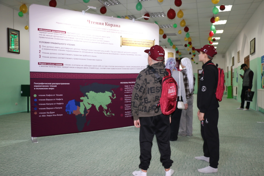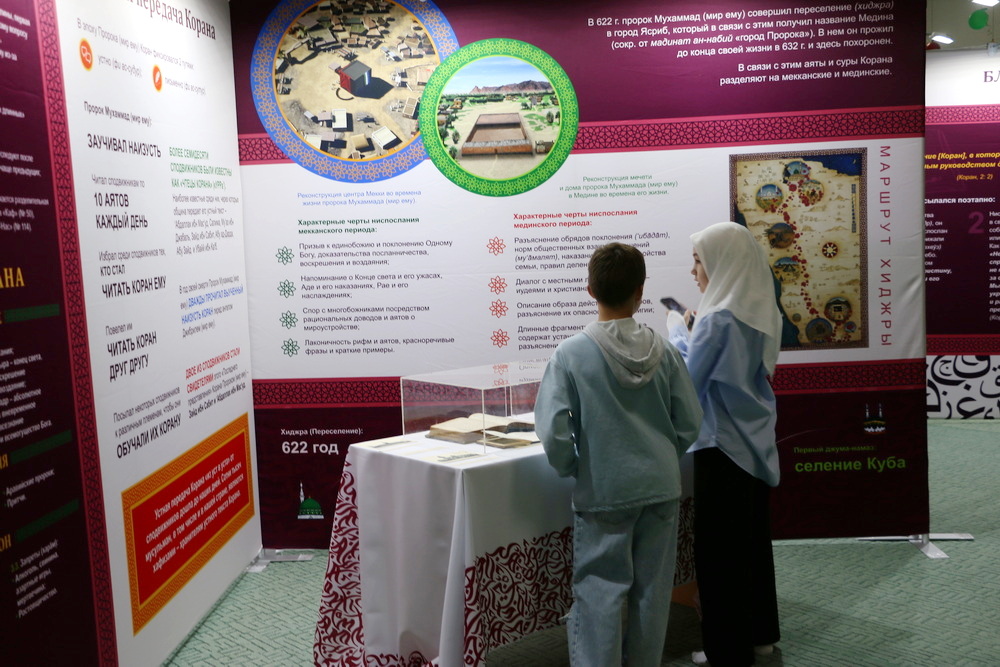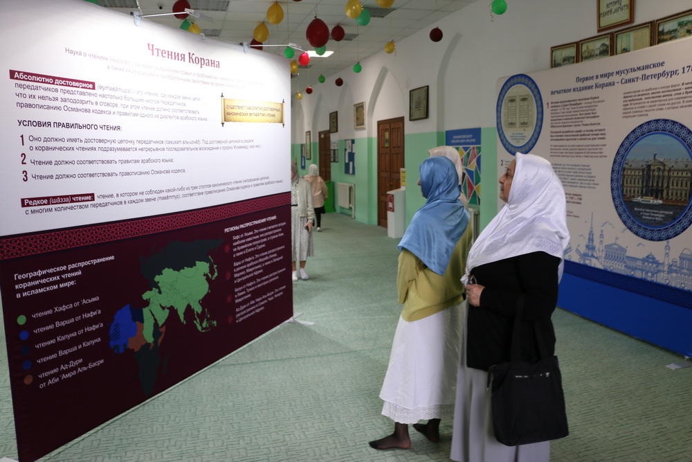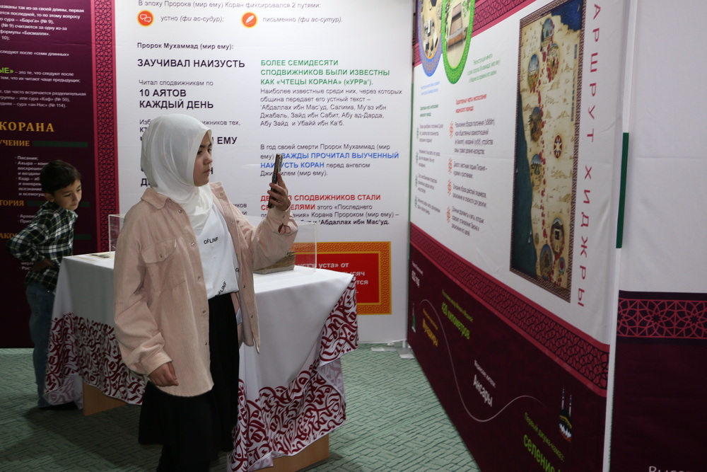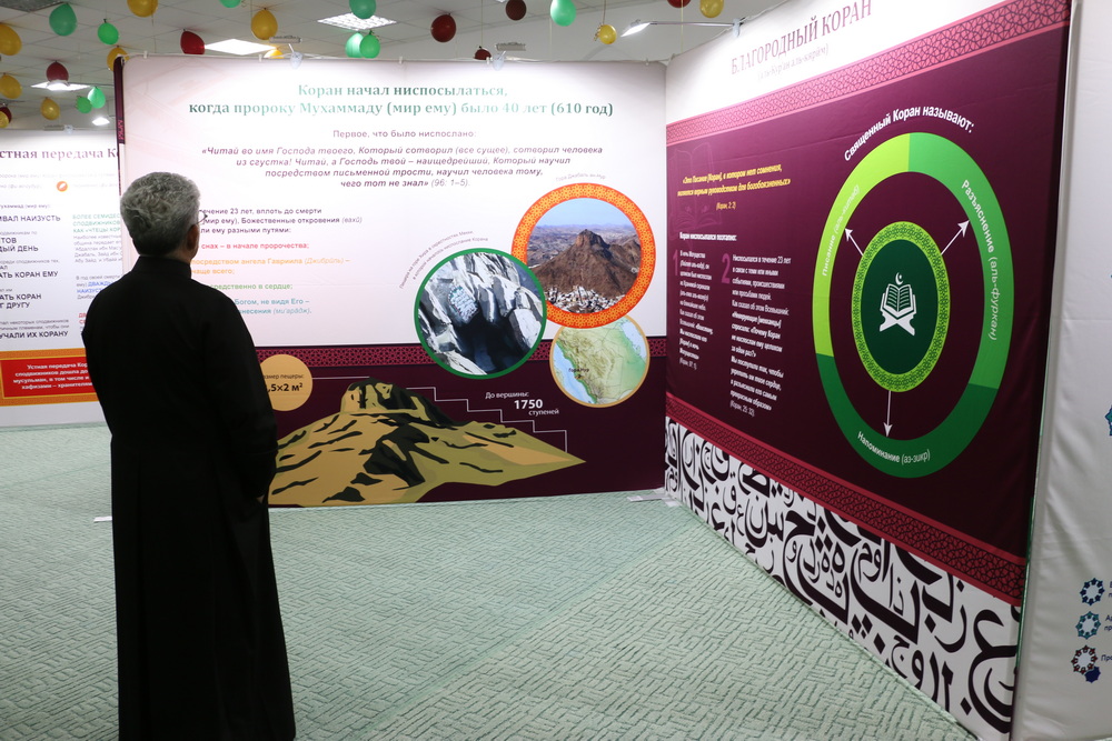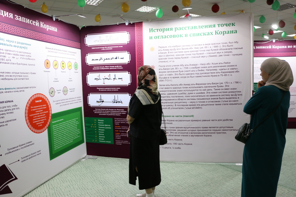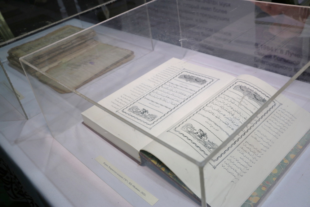 Стоит отметить, на первом этаже Саратовской Соборной мечети были представлены экспозиции, посвященные истории Ислама и мусульман, развитии коранических наук, конкурсов чтецов Книги Аллаха в мире и России. Также посетители выставки могли детально изучить историю фиксации Корана, увидеть старинные рукописи, первые печатные экземпляры, редкие экспонаты, которые смогли сохраниться до наших дней.