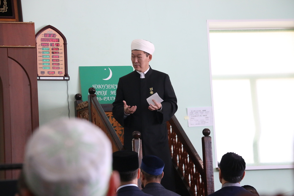 Муфтий Омской области вел пятничную проповедь на двух языках – русском и казахском. Стоит отметить, в Новоузенском районе мусульмане составляют четверть населения, большинство из них являются казахами.