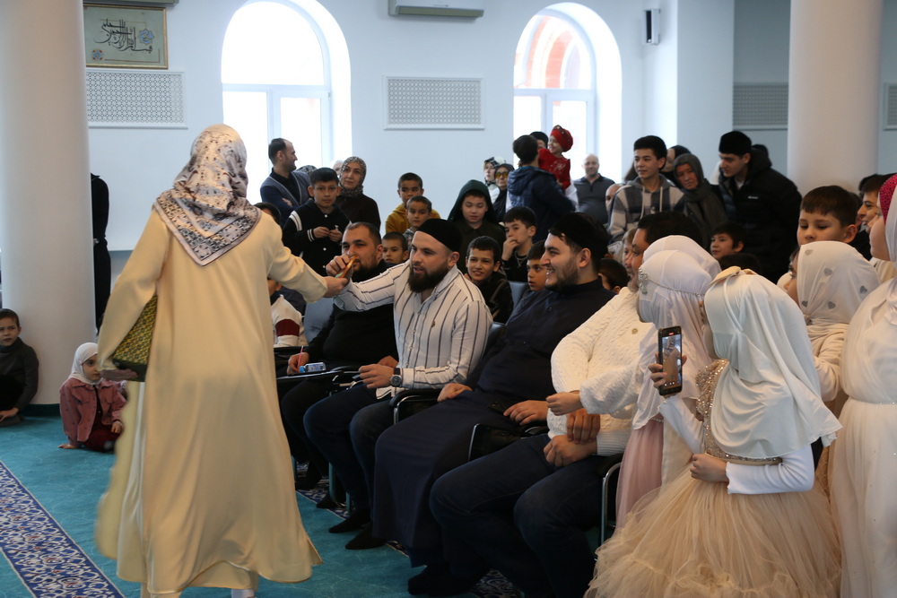 Открывая торжество, строки из Книги Аллаха прочитал имам Соборной мечети, хафиз Ясир Додорбеков. Пап, мам и их детей поприветствовал руководитель культурно-просветительской организации «Возрождение» Рустам Абдульманов.