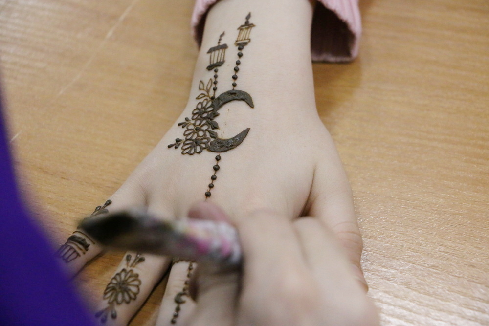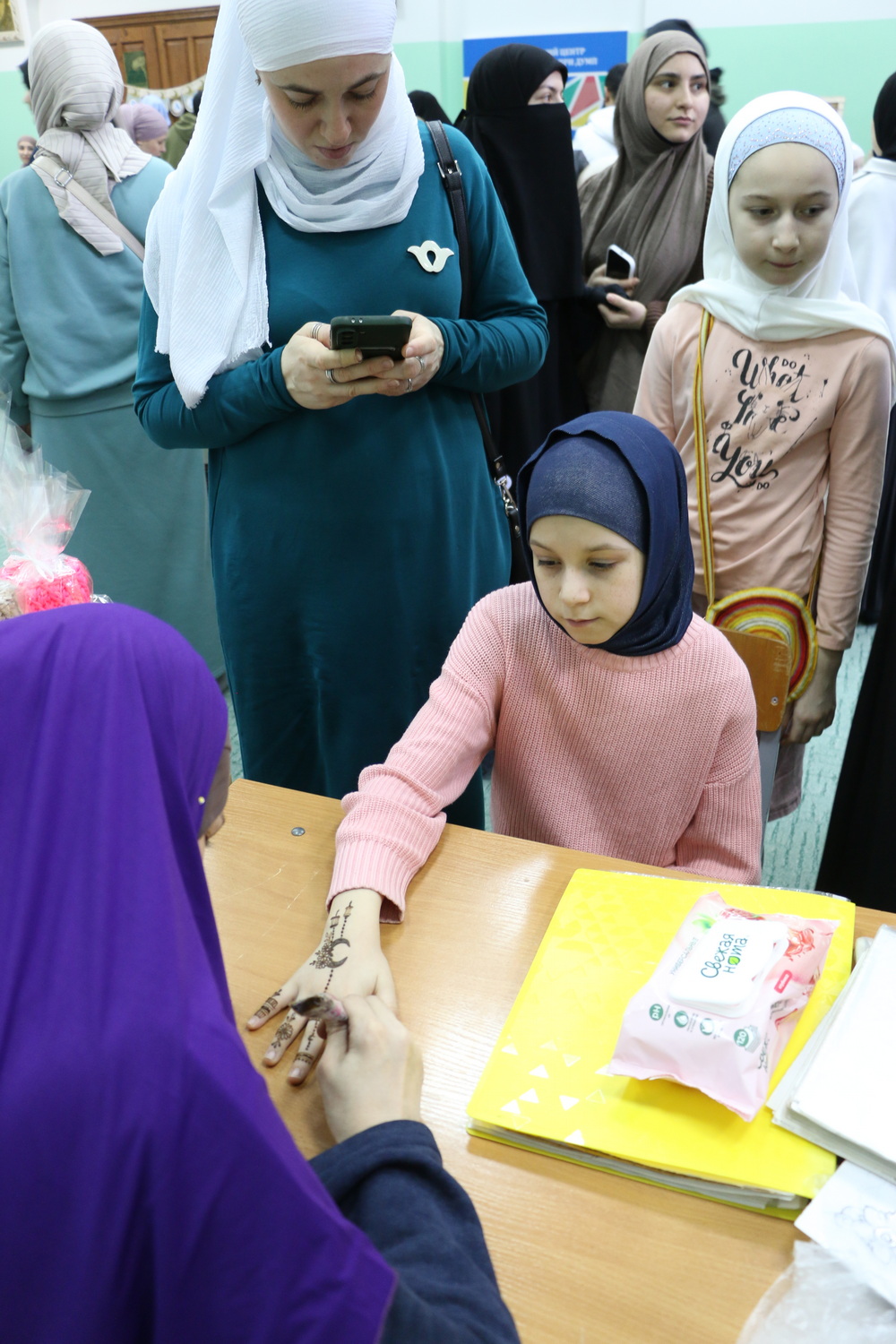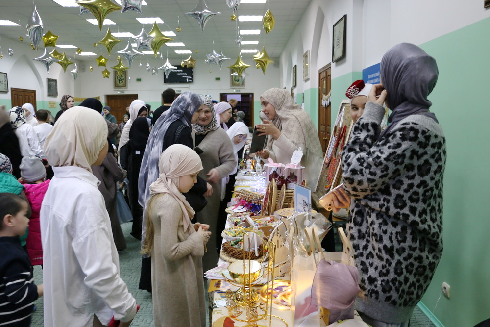 Стоит отметить, что Соборная мечеть во время праздника представляла из себя на несколько площадок. В холле посетителей ждала ежегодная рамадановская ярмарка, где мастерицы, рукодельницы, мусульманки-предприниматели представили свои товары. Здесь можно было найти украшения ручной работы и экологичные изделия из дерева, гирлянды, фонарики для дома и натуральные авторские десерты. И даже платье невесты!