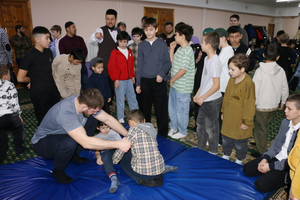 На цокольном этаже была обустроена спортивная зона для представителей сильного пола. Перед прихожанами выступили чемпионы различных турниров MMA, борцы Джамал Гусейнов и Нухбек Зайнулабидов. Они продемонстрировали на матах приемы самообороны и провели ряд мастер-классов для мальчиков, которые с воодушевлением повторяли движения за своими наставниками.