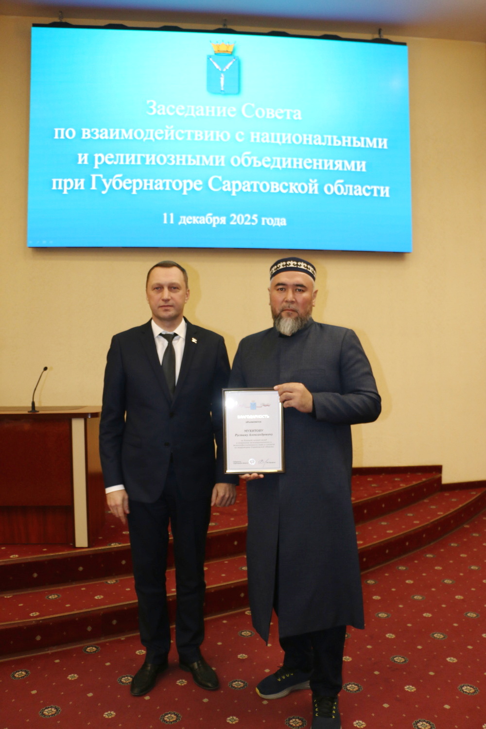 Благодарственные письма губернатора за большой личный вклад в укрепление межнационального и межнационального мира и согласия на территории Саратовской области получили представитель главы Чеченской Республики в Саратовской области Асламбек Байтарбиев, а также представители Саратовской митрополии РПЦ.