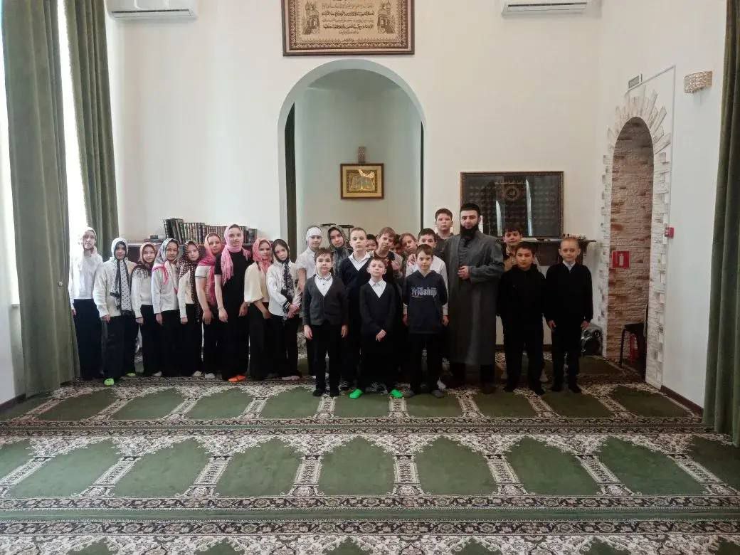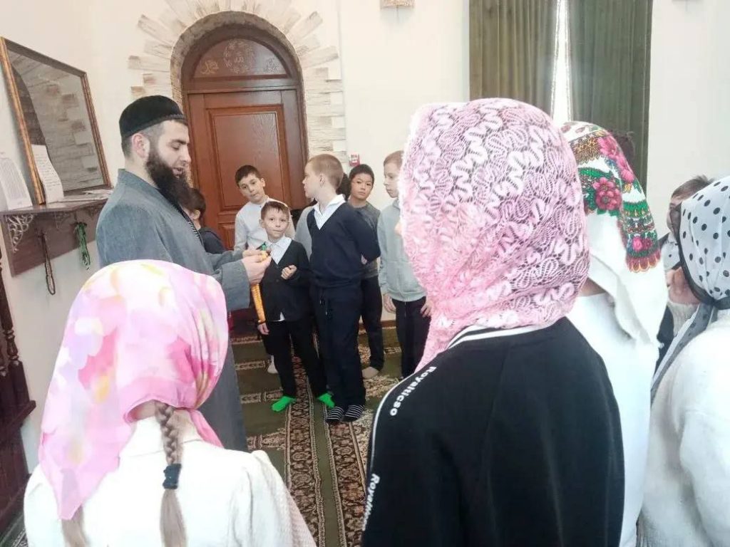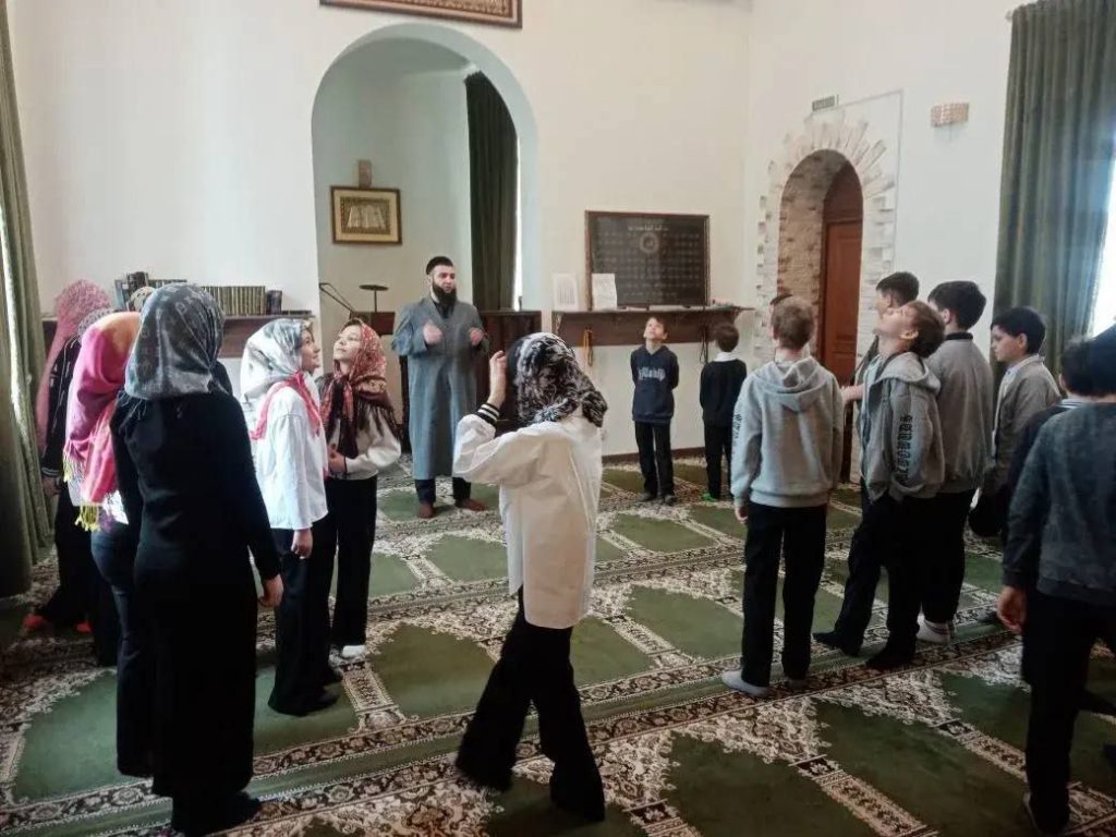 Религиозный деятель показал школьникам здание, познакомил их с основами Ислама, рассказав о некоторых законоположениях религии, а также в развернутом виде продемонстрировал экземпляр Корана в оригинале, пояснив, какие особенности есть у Священного Писания мусульман. Кроме того, школьники узнали о том, что рядом с мечетью на данный момент ведется строительство медресе, и о его предназначении.