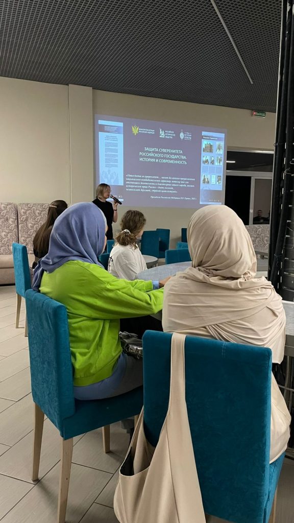 Учащиеся вечернего отделения прослушали лекцию на тему «Защита суверенитета Российского государства. История и современность», в ходе которой вспомнили об основных этапах развития страны и общества, от Рюриковичей — до наших дней. Также гости из медресе смогли и самостоятельно осмотреть выставочные залы интерактивного музея, представляющего экспозиции с помощью новейших технологий.