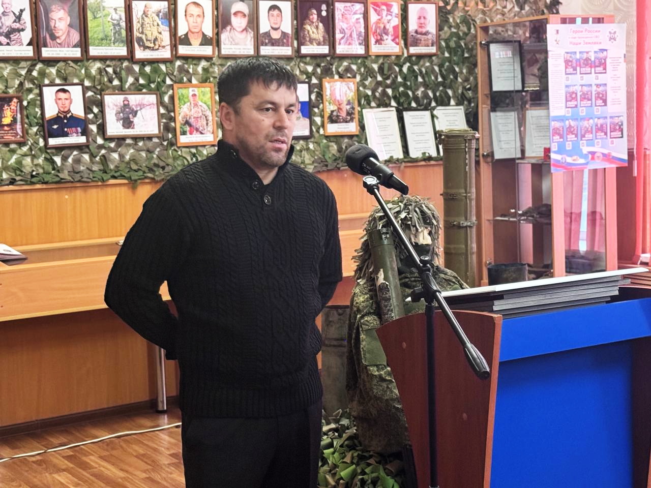 В ходе церемонии не были забыты и те бойцы, которые сегодня находятся в горячих точках на СВО, а также жители Саратовской области, принимавшие участие в сборах гуманитарной помощи для военнослужащих. Залимхан Кошеров, отправляющий грузы в зону боевых действий, отметил присутствующих на открытии выставки представителей мусульманской общины и передал им благодарственные письма от командования части.