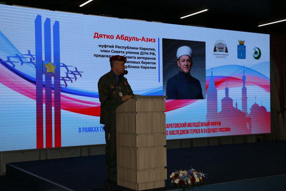 Работа первой секции под названием «Ответственность за Отечество: взгляд разных поколений» началась с выступления особого спикера – специально для участия в Форуме в Саратов приехал член Совета улемов Духовного управления мусульман РФ, председатель ДУМ Республики Карелия, председатель Совета ветеранов краповых беретов РК Саид Абдуль-Азиз Дятко. Он рассказал о своей службе в вооруженных силах и участии в легендарной операции по освобождению заложников, призвав помнить, что преступники не имеют национальности и религии. Муфтий Карелии отметил, что сила нашей страны в сплочении народов и взаимопомощи, ее защита – наше общее дело.