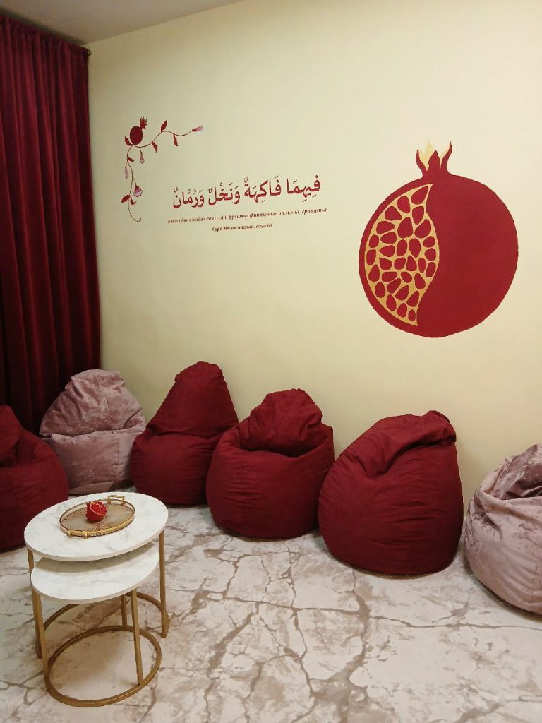 Стоит обратить внимание и на тщательно продуманный декор помещения. В основу его концепции, пояснили в «Мактабе», легло представление о гранате: цвет, форма, сплоченность его зерен помогли создать преподавателям уникальное и эстетичное место, куда ребятам захочется приходить снова и снова.